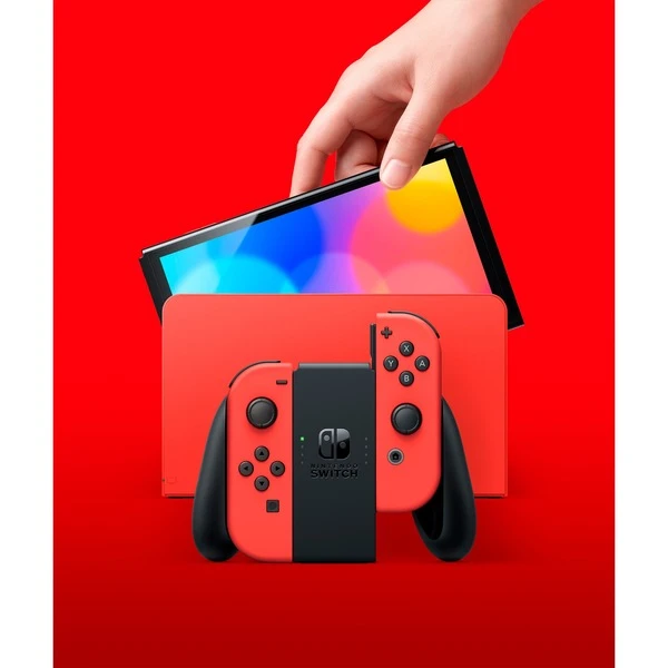 Videospiel-Fans erhalten mit dem OLED-Modell der Nintendo Switch eine weitere Option zum Spielen einer riesigen Auswahl an Nintendo Switch-Titeln. Das OLED-Modell ist in etwa so breit und so hoch wie die ursprüngliche Nintendo Switch Konsole, besitzt aber einen größeren 7-Zoll-OLED-Bildschirm mit intensiver Farbdarstellung und hohem Kontrast. Nintendo Switch (OLED-Modell) hat zudem einen breiten, verstellbaren Aufsteller zur Verwendung im Tisch-Modus, eine Station mit LAN-Anschluss für eine stabile Internetverbindung und 64 GB internen Speicher. Hinzu kommen außerdem integrierte Lautsprecher, die für hochwertige Tonqualität beim Spielen im Handheld- oder Tisch-Modus sorgen. Wie auch schon mit Nintendo Switch können Spieler:innen auch mit Nintendo Switch (OLED-Modell) im TV-Modus auf dem Fernsehbildschirm spielen. Egal ob allein oder gemeinsam: einfach die abnehmbaren Joy-Con aus der Konsole ziehen und schon geht’s los. Und wie Nintendo Switch und Nintendo Switch Lite kann auch Nintendo Switch (OLED-Modell) ganz einfach überallhin mitgenommen werden. Alle zuvor erschienenen Joy-Con für Nintendo Switch sind mit dem OLED-Modell kompatibel.Art.-Nr.: 100013634
