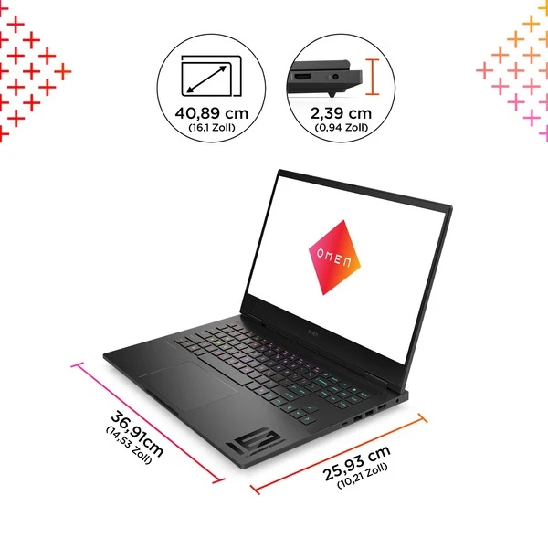 Mobiles Gaming mit tollem Design und großem Display: Das OMEN 16-wd0176ng wartet mit einem 40,9 cm (16,1″) großen Bildschirm auf, der mit FHD (1920 x 1080 Pixel) auflöst, eine Wiederholrate von 144 Hz erreicht. Die Bilddarstellung übernimmt in diesem Gaming-Notebook eine NVIDIA GeForce RTX 4060 mit acht Gigabyte GDDR6-Videospeicher. Herzstück dieses mobilen Kraftpakets ist als Prozessor ein Intel® Core™ i7-13620H, der mit 32 Gigabyte DDR5-RAM und einer ein Terabyte großen M.2 PCIe-SSD kombiniert wurde. Ein Soundsystem von Bang & Olufsen sowie eine Tastatur mit RGB-Hintergrundbeleuchtung sorgen für beeindruckendes, stilvolles Gameplay. Dabei ist das Gerät über Wi-Fi 6E (802.11ax) oder Gigabit-LAN vernetzbar und hat Anschlüsse für Thunderbolt 4 und HDMI 2.1 an Bord.Art.-Nr.: 100003492