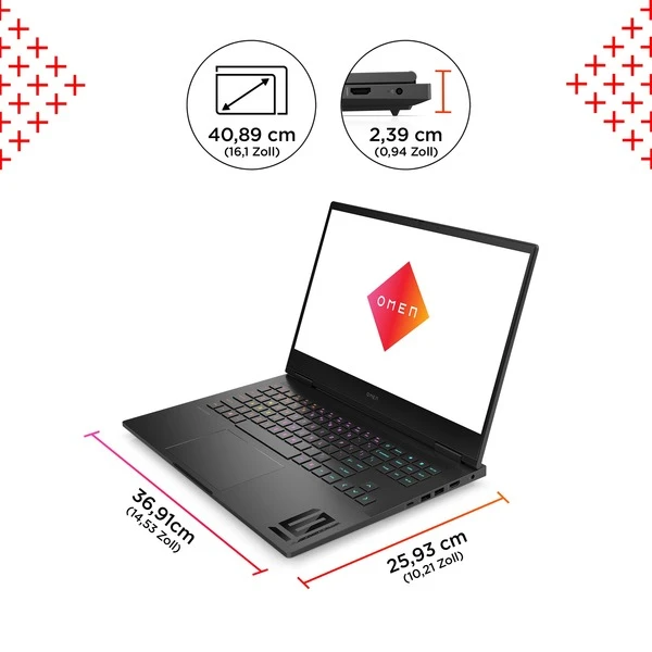 Mobiles Gaming mit tollem Design und großem Display: Das OMEN 16- xd0174ng wartet mit einem 40,9 cm (16,1″) großen Bildschirm auf, der mit FHD (1920 x 1080 Pixel) auflöst, eine Wiederholrate von 144 Hz erreicht. Die Bilddarstellung übernimmt in diesem Gaming-Notebook eine NVIDIA GeForce RTX 4060 mit acht Gigabyte GDDR6-Videospeicher. Herzstück dieses mobilen Kraftpakets ist als Prozessor ein AMD Ryzen 7 7840HS, der mit 16 Gigabyte DDR5-RAM und einer ein Terabyte großen M.2 PCIe-SSD kombiniert wurde. Ein Soundsystem von Bang & Olufsen sowie eine Tastatur mit RGB-Hintergrundbeleuchtung sorgen für beeindruckendes, stilvolles Gameplay. Dabei ist das Gerät über Wi-Fi 6E (802.11ax) oder Gigabit-LAN vernetzbar und hat Anschlüsse für USB-C und HDMI 2.1 an BordArt.-Nr.: 100003487