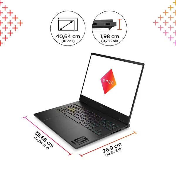 Mobiles Gaming mit tollem Design und großem Display: Das OMEN Transcend 16-u0177ng wartet mit einem 40,6 cm (16″) großen Bildschirm auf, der mit FHD+ (1920 x 1200 Pixel) auflöst, eine Wiederholrate von 165 Hz erreicht und 100% sRGB unterstützt. Die Bilddarstellung übernimmt in diesem Gaming-Notebook eine NVIDIA GeForce RTX 4070 mit acht Gigabyte GDDR6-Videospeicher. Herzstück dieses mobilen Kraftpakets ist als Prozessor ein Intel® Core™ i7-13700HX, der mit 32 Gigabyte DDR5-RAM und einer ein Terabyte großen M.2 PCIe-SSD kombiniert wurde. Ein Soundsystem von Bang & Olufsen sowie eine Tastatur mit RGB-Hintergrundbeleuchtung sorgen für beeindruckendes, stilvolles Gameplay. Dabei ist das Gerät über Wi-Fi 6E (802.11ax) oder Gigabit-LAN vernetzbar und hat Anschlüsse für Thunderbolt 4 und HDMI 2.1 an Bord.Art.-Nr.: 100003484
