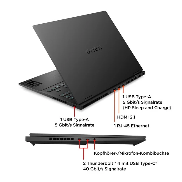 | Weitere Informationen | Der Thunderbolt 4 Port unterstütz DisplayPort 1.4 und HP Sleep and Charge, der USB-A Port unterstützt HP Sleep and Charge | ||