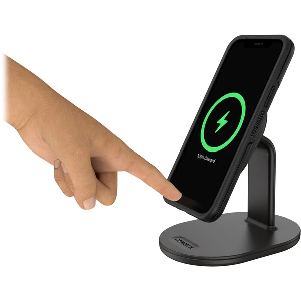 Der elegante, kompakte Otterbox Ladeständer für MagSafe mit kleinem Sockel und magnetischer Befestigung ist die ideale Abstellmöglichkeit für das iPhone zu Hause und im Büro. Wenn man das iPhone an dem kabellosen Ladeständer befestigt, weiß man immer, wo es ist. Oder man stellt den Ständer an einen Ort, an dem man alle Verbindungen im Blick hat. Man interagiert während des Ladevorgangs mit dem Telefon und nimmt es dann mit einer einfachen Drehung vom Ständer ab. Das schlanke Design macht es zu einer idealen Abstellmöglichkeit für das iPhone. Der Otterbox Ladeständer für MagSafe bietet eine sichere Position für das iPhone im Hoch- oder Querformat beim Laden, Streamen und dem Herstellen von Verbindungen. Der einzigartige, im Dunkeln leuchtende Ring beleuchtet die Halterung und erleichtert das Auffinden im Dunkeln. Die rutschfeste, schwere Form bietet Standfestigkeit beim einhändigen Aufsetzen und Abnehmen des iPhones.Art.-Nr.: 1826766