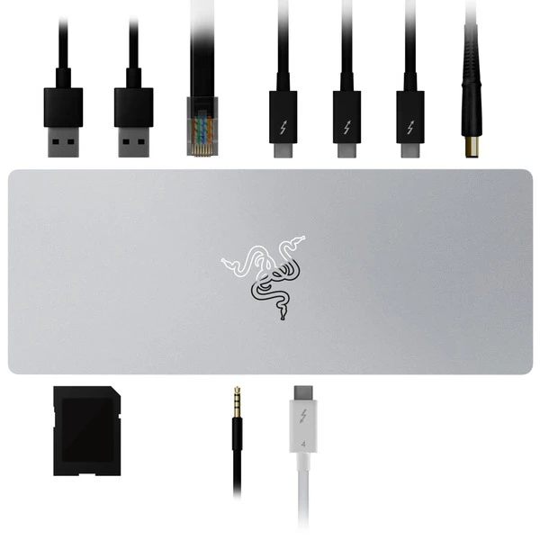 Mit dem Razer Thunderbolt 4 Dock Mercury Edition macht man eigene Regeln: Das elegante Dock besticht mit vier Thunderbolt 4 Ports, die Datenübertragungen mit bis zu 40 Gbit/s ermöglichen. Die Ports machen es möglich, Audio- und Videodaten zu übertragen sodass man noch produktiver Arbeiten kann. Das Thunderbolt 4 Dock Chroma besitzt einen SD-Kartenleser und kann per Gigabit LAN verbunden werden um eine stabile Netzwerkverbindung sicher zu stellen. Über die vorhandenen Thunderbolt-Ausgänge können wahlweise bis zu zwei 4K- oder ein einzelnes 8K Display angeschlossen und angezeigt werden. Der Audio-Kombi Anschluss ermöglicht es Kopfhörer sowie externe Lautsprecher-Lösungen anzuschließen.Art.-Nr.: 1848465