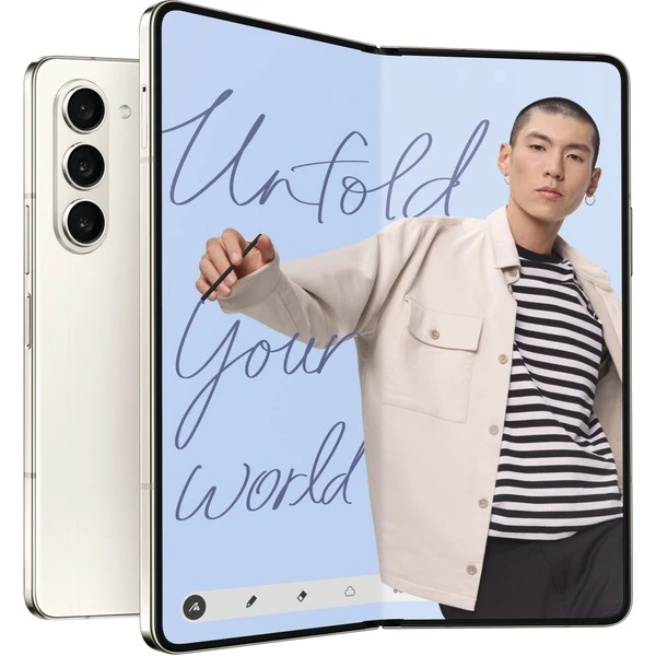 Das Samsung Galaxy Z Fold5 ist ein Smartphone mit einem großen Bildschirm, das sich wie ein mobiles Kino anfühlt. Ein Smartphone, das jedem sowohl als aufregende Spielekonsole als auch als Multitasking-Arbeitstier mit mehreren Bildschirmen dient. Abgerundet mit einer leistungsstarken, professionellen Kamera. Hält man es zusammengeklappt in einer Hand, kann man es auf dem 15,73cm (6,2 Zoll) großen Frontdisplay ganz bequem bedienen. Faltet man es auf, taucht man in das imposante 19,21cm (7,6 Zoll) große Hauptdisplay ein. Dank des schmalen Rahmens und der unter dem Display liegenden Kamera, kann man sich voll auf das atemberaubenden Infinity Flex Display und alle Inhalte konzentrieren. Mit Multi View nutzt man auch den ganzen Platz auf dem imposanten Hauptdisplay aus, damit man einfach viel gleichzeitig im Auge behalten kann. Das leistungsstarke Galaxy Z Fold5 kann mit One UI Apps für Multi View anpassen und so für jede Situation einen guten Überblick verschaffen. Das Galaxy Z Fold5 sieht nicht nur elegant aus, es hält auch vieles von dem aus, was der Alltag so mit sich bringt. Die Vorder- und Rückseiten bestehen aus widerstandfähigem Corning Gorilla Glass Victus 2. Zusammen mit einem stabilen „Armor Aluminum“-Rahmen ist das Galaxy Z Fold5 ein robustes, faltbares Smartphone. Egal, ob ein paar Tropfen Regen oder gleich eine ganze Pfütze. Dem Smartphone macht das so gut wie nichts aus, denn das Galaxy Z Fold5 ist nach IPX8 gegen Wasser geschützt. Wenn aus einem aufregenden Tag eine aufregende Nacht wird, kann man trotzdem weiter atemberaubende Aufnahmen machen. Die optische Bildstabilisierung kann für geschmeidige Videos sorgen und die angepasste Software das Bildrauschen reduzieren. Die Hauptkamera fängt viel Licht ein, sodass im Porträt-Modus auch bei wenig Licht klare Fotos mit brillanten Farben gelingen können.Art.-Nr.: 100008261