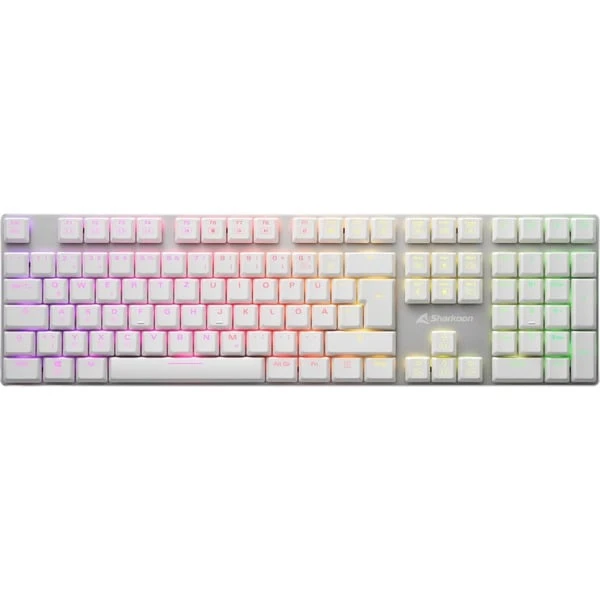 Mit der zeitlos-eleganten PureWriter RGB präsentiert Sharkoon eine Tastatur für alle Gelegenheiten, die neben innovativen, mechanischen Schalter in ultra-flachem Design nun auch mit einer stufenlos-einstellbaren RGB-Beleuchtung in 16,8 Millionen Farben hervorsticht. Die Tastatur selbst ist mit 436 mm Länge und 127 mm Breite randlos kompakt und mit einer Höhe von 23 mm mit eingeklappten Standfüßen so flach wie möglich. Mit nur 642 Gramm Gewicht und zwei mitgelieferten USB-Kabeln mit 50 cm und 150 cm Länge ist sie zudem bequem zu transportieren und – egal ob unterwegs, daheim oder im Büro – überall einsetzbar. Vielschreiber werden dabei besonders die flachen, blauen Schalter nicht mehr missen möchten. Durch den geringen Weg zum Schaltpunkt von 1,5 mm sowie die spürbaren Klick- und Umschaltpunkte ist ein ermüdungsfreies Arbeiten bei angenehmer Schreibmaschinen-Atmosphäre bietet. Durch die flache Höhe der Tastatur wird auch ohne Handballenauflage eine ergonomische Arbeitsweise unterstützt. Dank der langen Lebensdauer der Tasten von mindestens 50 Millionen Tastenanschlägen können zehntausende Seiten getippt werden – und dass mittels der stufenlos-regulierbaren RGB-Beleuchtung sogar in abgedunkelter Umgebung! Gamer können sich neben der individuellen Beleuchtung in 16,8 Millionen Farben auf eine Vielzahl an Beleuchtungseffekten und die in vier Profilen speicherbare individuelle Beleuchtung einzelner Tasten freuen. Dabei lassen sich alle Einstellungen schnell und einfach ohne Software vornehmen. Selbstverständlich bietet die PureWriter RGB mit N-Key-Rollover, Anti-Ghosting-Keys und eine Polling-Rate von 1.000 Hz alles weitere Essentielle, was zum Spielen benötigt wird. Über vorprogrammierte Multimedia-Tasten lässt sich zudem jederzeit der passende Soundtrack auswählen und steuern oder ganz bequem surfen.Art.-Nr.: 1747577
