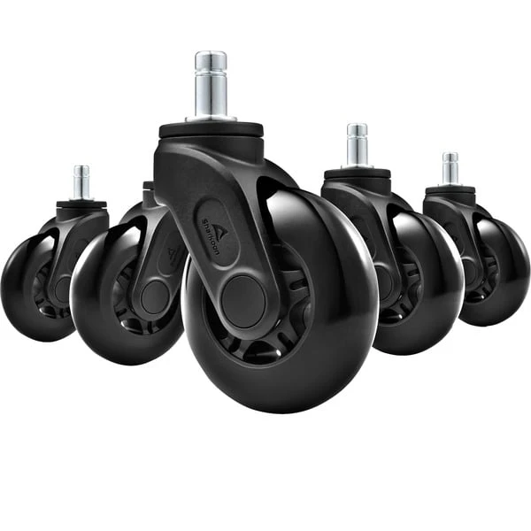 Geschwindigkeit, Stille und volle Mobilität – diese Werte wurden für die Sharkoon SW10 maximiert. Ob Zuhause oder im Büro, sie sind die perfekte Ergänzung für jeden Gaming- oder Schreibtischstuhl und passen durch ihren universellen 11 x 22 mm Stift in nahezu alle gängigen Modelle. Die den Rollen von Inline Skates nachempfundenen Räder sind aus Polyurethan gefertigt, das sowohl robust als auch besonders schonend für empfindliche Untergründe ist. Ohne Kratzer oder andere Spuren zu hinterlassen, gleiten die Räder sanft über alle Oberflächen und Böden. Zwei Kugellager sind in den Rollen integriert, wodurch sie widerstandslos und spürbar leichtgängig über den Boden gleiten. Zwei weitere erlauben es den SW10 sich flexibel um 360° zu schwenken. Dabei sind die Rollen auch enorm leise und stören so weder Kollegen, noch Freunde oder Familie. Fürs konzentrierte Arbeiten im Büro oder nächtliches Gaming sind sie daher das ideale Upgrade für jeden Stuhl.