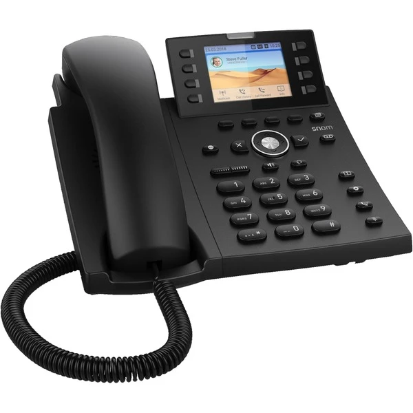 Das snom D335 besitzt ein hochauflösendes TFT-Display und 8 physische Funktionstasten, über welche man bis zu 32 selbst beschriftbare Funktionen auslösen kann. Das snom D335 ist PoE fähig und verfügt über einen USB-Eingang für Headsets. Dank DSP bietet das D335 eine verbesserte Audioqualität, dabei unterstützt es zahlreiche Audiocodecs und reduziertes Rauschen. Art.-Nr.: 1574500