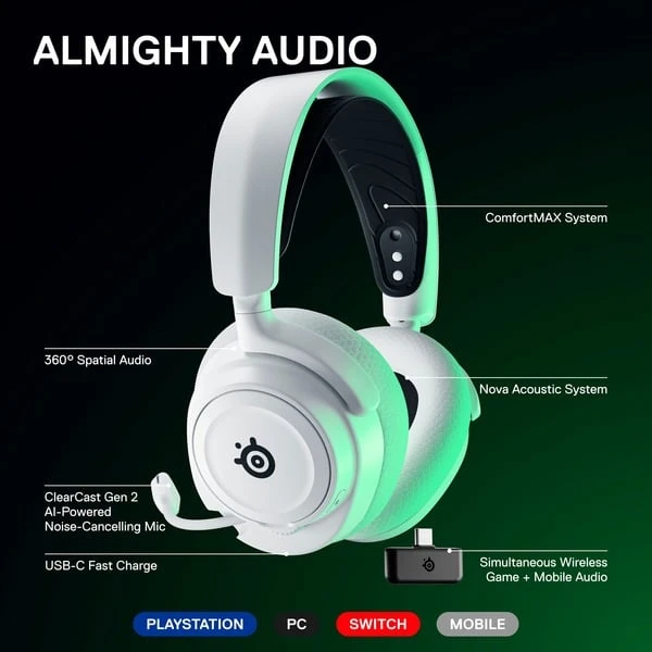 | Feature | 360° Spatial Audio, Sonar Audio Software Suite Pro, Grade Parametric EQ, Schnellladefunktion, AI Powered Noise-Cancelling, ComfortMAX System, AirWeave Memoryschaum | ||