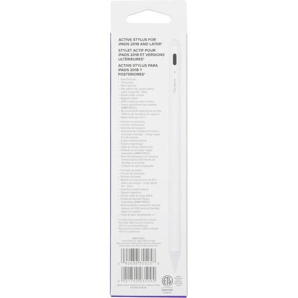 | Besonderheiten | Targus DefenseGuard antimikrobieller Schutz, langlebige POM-Spitze, Handballenabweisungsfunktion, energiesparender Ruhemodus nach 5 Minuten im Leerlauf, Akkulaufzeit bis zu 10 Stunden Dauerbetrieb oder 90 Tage im Standby | ||