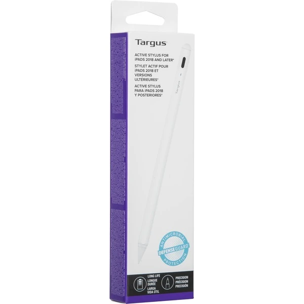 Mit dem Targus antimikrobiellen Active Stylus für iPad ermöglicht müheloses Schreiben, Zeichnen und Scrollen. Die langlebige 1,2 mm feine POM-Spitze bietet ein natürliches, stiftähnliches Gefühl und dank der Handballenabweisungsfunktion kann man die Hand ganz natürlich auf dem Bildschirm ablegen und genauso flüssig schreiben wie auf Papier. Der Active Stylus benötigt keine Treiber oder Bluetooth-Verbindung, um zu funktionieren. Er aktiviert sich einfach per Berührung und schaltet nach 5 Minuten im Leerlauf in den energiesparenden Ruhemodus. Nach einer Ladezeit von 90 Minuten hält der Active Stylus 10 Stunden Dauerbetrieb oder 90 Tage im Standby. Als zusätzlicher Vorteil verfügt dieser Stift über den DefenseGuard Antimikrobiellen Schutz von Targus – eine in das Material eingearbeitete Schutzschicht, die eine sauberere Oberfläche schafft und den Stift schützt.Art.-Nr.: 1824552