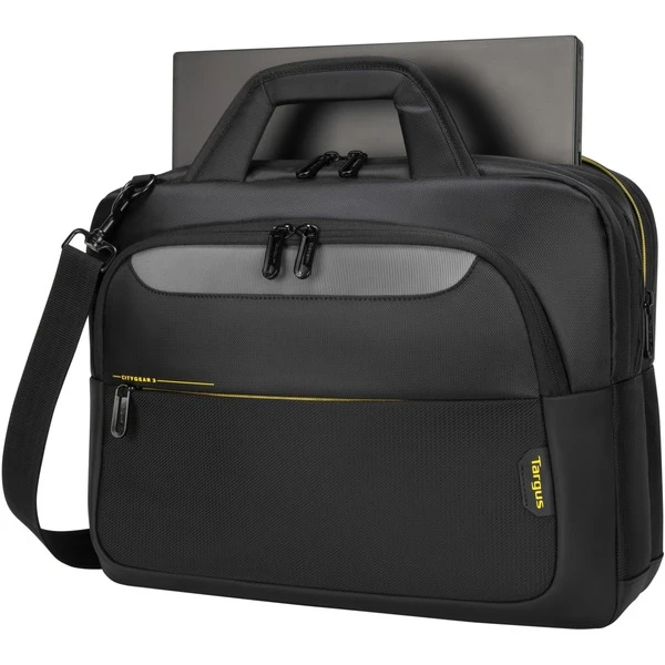 Die Targus CityGear Topload Notebooktasche bietet Schutz und Platz für Notebooks bis 39,6 cm (15,6“), Tablets und Zubehör. Weiterhin steht viel zusätzlicher Platz für Zubehör und Geschäftsunterlagen zur Verfügung. Dabei behält die CityGear ein schlankes Gesamtprofil bei, sodass sie in Überkopfabteile oder unter den Sitz passt. Diese multifunktionale Tasche bietet geopolsterte Griffe, einen gepolsterten Schultergurt und ein Trolley-Gurt. Das Dome Protection System schützt das Notebook mit stoßdämpfenden Schichten, die in die Tasche integriert sind. So werden Druck und Stöße abgeleitet.Art.-Nr.: 1590216