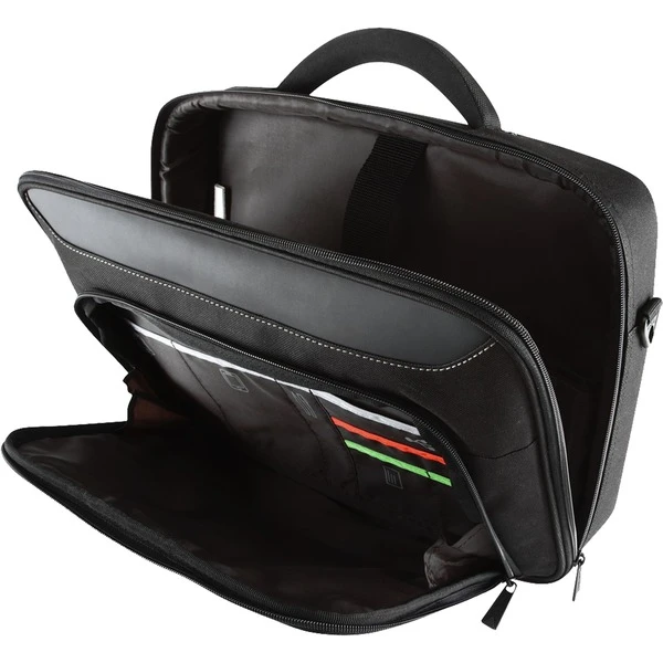 Die Targus Classic+ Clamshell in Schwarz ist eine schlanke und kompakte Notebooktasche und sorgt für optimalen Schutz für 15,6″-Breitbildnotebooks. Dank des gepolsterten Notebookfachs ist das Notebook vor Stößen geschützt und dank des zusätzlichen Sicherheitsriemens mit Klettverschluss kann das Notebook nicht verrutschen. Die Classic+ Clamshell besitzt eine funktionelle Fronttasche mit Reißverschluss für Mobiltelefon, Kabel, Kopfhörer, Visitenkarten und Stifte – somit sind alle wichtigen Dinge jederzeit griffbereit. Die Classic+ Clamshell kann entweder an dem verstärkten und gepolsterten Tragegriff oder über der Schulter mit dem abnehmbaren und verstellbaren Schultergurt getragen werden.Art.-Nr.: 1146331