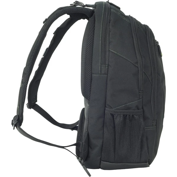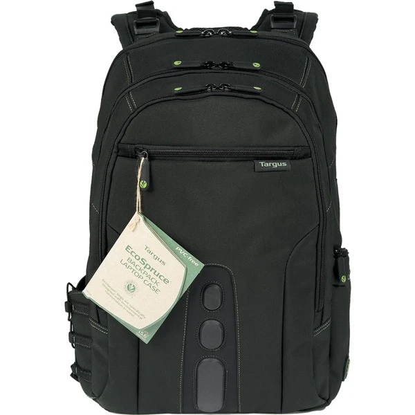 Der schwarze Targus EcoSpruce wurde aus PET-Polyesterfaser, die aus Wasserflaschen hergestellt wird, gefertigt und bietet Platz für einen Laptop mit einer Bildschirmdiagonale von bis zu 15,6 Zoll. Die eingebaute Schnellzugrifftasche verfügt über einen Schlüsselclip, zusätzlich sind Stiftschlaufen, Visitenkartenhalter, Zubehörtaschen, Trinkflaschenhalter und eine MP3-Player-Tasche eingebaut. Der Boden des Targus EcoSpruce ist wasserabweisend und der Rucksack lässt sich mit einem Reißverschluss verschließen.Art.-Nr.: 1271552