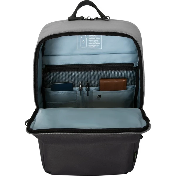 Der umweltfreundliche Sagano EcoSmart Reiserucksack aus recycelten Materialien wurde entwickelt, um Laptops bis zu einer Größe von 39,56 cm (15,6″) und andere wichtige Utensilien mit Stil und Leichtigkeit zu transportieren – egal ob auf einem Flug oder auf dem Fahrrad. Er bietet mehrere Fächer und modernes Design. Das SafePort Sling Protection-System schützt den den Laptop von innen: Es verwendet eine Aufhängung, die zwischen den gegenüberliegenden Wänden des Hauptfachs angebracht ist, so dass der Laptop in der Schwebe bleibt und bei einem versehentlichen Sturz kein Kontakt zwischen dem Gerät und dem Taschenboden besteht. Hinzu kommt ein RFID-Fach für sensible Daten. Mit seinen ergonomischen Schultergurten ist dieser Reiserucksack bequem zu tragen, sein atmungsaktiver Netzrücken sorgt für eine gute Luftzirkulation. Mit dabei ist auch ein Trolley-Gurt, mit dem er an Rollgepäck befestigt werden kann. Eine versteckte Regenhülle, ist ebenfalls mit dabei. Das Material für diesen Rucksack wurde aus 9 recycelten PET-Flaschen hergestellt.Art.-Nr.: 1843999