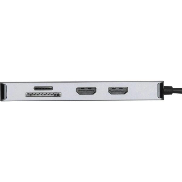 Die Targus Universal USB-C DV4K ist eine unglaublich leistungsstarke Dockingstation mit zwei HDMI-Ausgängen, über welche Monitore mit einer Auflösung von bis zu 3.840 x 2.160 Pixeln (UltraHD) betrieben werden können, auch über eine USB-C Port mit PD-Funktion (Power Delievery) zum Aufladen eines angeschlossenen Notebooks mit bis zu 100 W Stromleistung. Weitere Anschlüsse sind insgesamt zwei USB-A 3.2 Ports, ein Gigabit-Ethernet Anschluss, sowie ein SD- und eine Micro-SD-Slot. Über HDMI werden Audiosignale in 5.1 Qualität übertragen, sodass man nicht nur ein brillantes Seh- sondern auch Hörerlebnis erzielt.Art.-Nr.: 1796165