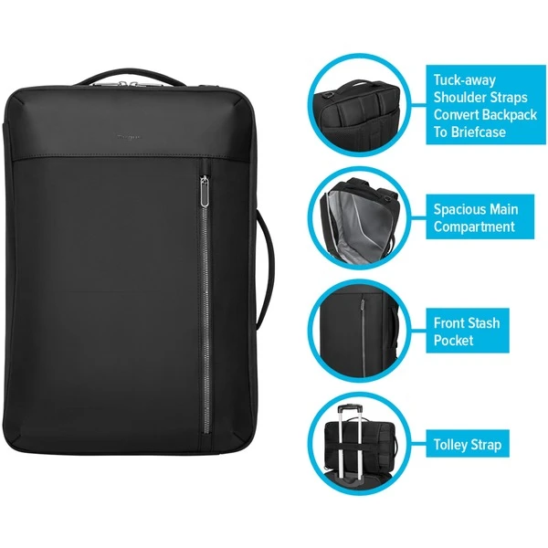 Der Urban Convertible Rucksack ist praktisch und vielseitig. Er schützt das Notebook und bietet eine anpassungsfähige Tragelösung für alles, was der Tag so bereithält. Mit seinen versenkbaren Schultergurten und dem eleganten Seitengriff lässt sich der Rucksack nahtlos von einem geschäftigen Pendler in einen Profi verwandeln und vom Rucksack in eine Aktentasche verwandeln. Mit klaren Linien und einem minimalistischen Innenleben bietet der Rucksack in einem leichten Rahmen den notwendigen Schutz und die nötige Organisation. Eine Vordertasche mit Reißverschluss ist so positioniert, dass man schnell darauf zugreifen kann. Der Urban Convertible wurde entwickelt, um einem mobilen Lebensstil gerecht zu werden. Der Rucksack verfügt über konturierte Schultergurte und eine gepolsterte Rückseite für mehr Komfort sowie über einen Trolley-Gurt.Art.-Nr.: 1730845