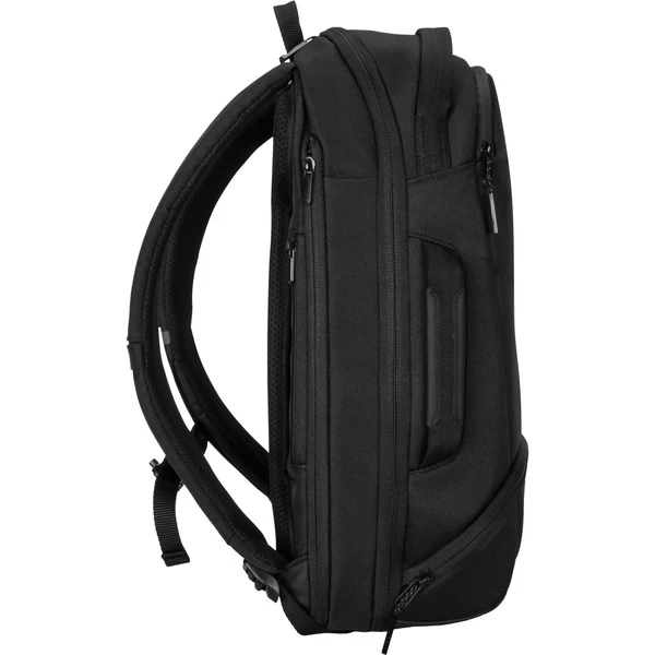 Die stromlinienförmige Konstruktion des Targus Work+ Compact 25L Rucksack bietet in seinem gepolsterten Hauptfach mit Schnellverschluss zur Kapazitätserweiterung einen stilvollen Platz für die wichtigsten Dinge des Tages. In der dafür vorgesehenen Tasche lässt sich eine Trinkflasche verstauen, damit Sie man immer genug Flüssigkeit dabeihat. In dem gefütterten, belüfteten Seitenfach können Ersatzschuhe getrennt von allem anderen in der Tasche aufbewahren werden. Ob Regen oder Sonnenschein, diese leichte Tasche besteht aus wasserabweisenden Materialien und schützt Technik vor den Elementen. Der Rucksack lässt sich von oben und flach beladen, verfügt über zwei zusätzliche Griffe und einen Trolley-Gurt, mit dem er bequem am Rollgepäck befestigt werden kann.Art.-Nr.: 1808638