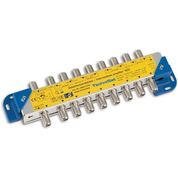 Der Zwischenverstärker 9Z2 wurde speziell dafür entwickelt, um größere Kabellängen in Sat-Verteilanlagen auszugleichen. Dabei ist die Verstärkung im Sat-Bereich (15 – 20 dB) so ausgelegt, dass die Dämpfung von 60 m COAXSAT 120-4.6 oder 40 m COAXSAT 115-3.6 ausgeglichen wird. Mit Hilfe dieses Zwischenverstärkers lassen sich selbst große Kabellängen problemlos bewältigen. Die Verstärkung des terrestrischen Signals ist individuell einstellbar, um gegenseitige Beeinflussungen mit dem Sat-Frequenzbereich zu vermeiden. Dieses Bauteil ist mit allen 9/8er Schaltern sowie mit den 9/xer TechniRouter kombinierbar.Art.-Nr.: 1618186