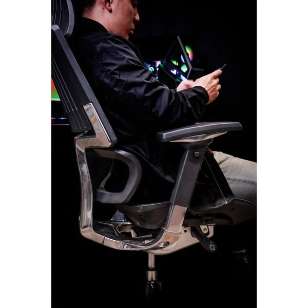 Der CyberChair E500 von Thermaltake ist ein ergonomischer Stuhl mit elastischer und luftdurchlässiger Soft-Touch-Netzpolsterung, stabilem Aluminiumrahmen und einem robusten Fußkreuz. Verschiedene Funktionen des Stuhls, einschließlich Kopfstütze, Sitztiefe, Sitzhöhe und 4D-Armlehne, können eingestellt werden. Die Rückenlehne kann je nach Bedarf in 4 Stufen auf einen Neigungswinkel von bis zu 117 Grad eingestellt werden. Das robuste 5-Sterne-Aluminiumfußkreuz hat einen Durchmesser von 70 cm und bietet eine Gewichtsunterstützung von bis zu 150 kg. Der CyberChair E500 bietet beispiellosen Komfort und höchste Anpassbarkeit für Arbeits- oder Gaming-Setups.Art.-Nr.: 1640410