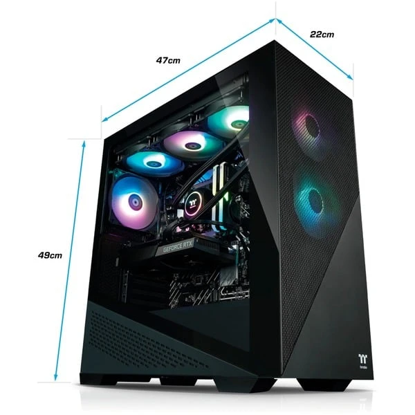 Der Thermaltake Hyperion V2 Black ist ein leistungsstarker Gaming-PC mit Wasserkühlung, dessen schwarzes Midi-Tower-Gehäuse mit Tempered Glass den Blick auf sein beeindruckendes, RGB-beleuchtetes Innenleben zulässt. Ausgestattet mit einem Intel® Core™ i5-13600KF 14-Kern-Prozessor, schnellen 32 GB Thermaltake TOUGHRAM XG RGB DDR5-Arbeitsspeicher und einer NVIDIA GeForce RTX 4070 Ti Grafikkarte mit 12 GB GDDR6X-Videospeicher lässt dieser PC Gamer-Herzen höher schlagen. Die 1 TB große Samsung 980 Pro SSD sorgt für Programm- und Systemstarts in Rekordzeit und bietet zudem viel Platz zum Speichern von Daten. Über 2,5-Gigabit-LAN sowie Wi-Fi 6 ist der Hyperion V2 Black netzwerkfähig und diverse Anschlüsse ermöglichen die Verbindung mehrerer Displays und verschiedenster Peripheriegeräte.Art.-Nr.: 1908433