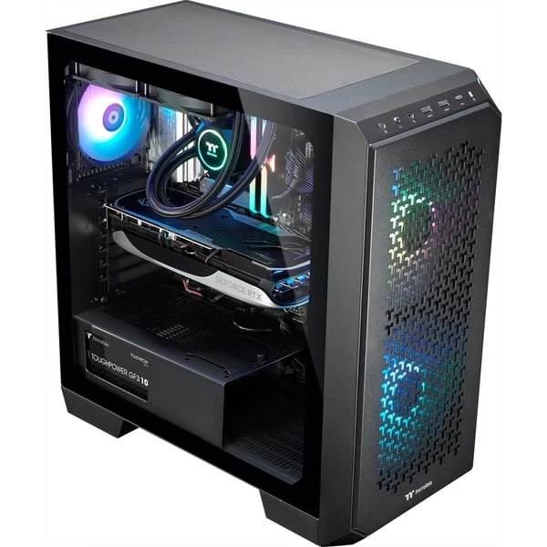 Der Thermaltake Tethys Black ist ein leistungsstarker Gaming-PC mit Wasserkühlung, dessen schwarzes Midi-Tower-Gehäuse mit Tempered Glass den Blick auf sein beeindruckendes, RGB-beleuchtetes Innenleben zulässt. Ausgestattet mit einem AMD Ryzen 7 7700X Achtkern-Prozessor, schnellen 32 GB Thermaltake TOUGHRAM XG RGB DDR5-Arbeitsspeicher und einer NVIDIA GeForce RTX 4070 Ti Grafikkarte mit 12 GB GDDR6X-Videospeicher lässt dieser PC Gamer-Herzen höher schlagen. Die 1 TB große Samsung 980 Pro SSD sorgt für Programm- und Systemstarts in Rekordzeit und bietet zudem viel Platz zum Speichern von Daten. Über 2,5-Gigabit-LAN sowie Wi-Fi 6 ist der Tethys Black netzwerkfähig und diverse Anschlüsse ermöglichen die Verbindung mehrerer Displays und verschiedenster Peripheriegeräte.Art.-Nr.: 1908441