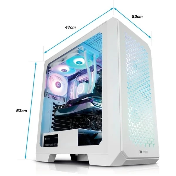 Der Thermaltake Tethys Snow ist ein leistungsstarker Gaming-PC mit Wasserkühlung, dessen weißes Midi-Tower-Gehäuse mit Tempered Glass den Blick auf sein beeindruckendes, RGB-beleuchtetes Innenleben zulässt. Ausgestattet mit einem AMD Ryzen 7 7700X Achtkern-Prozessor, schnellen 32 GB Thermaltake TOUGHRAM XG RGB DDR5-Arbeitsspeicher und einer NVIDIA GeForce RTX 4080 Grafikkarte mit 16 GB GDDR6X-Videospeicher lässt dieser PC Gamer-Herzen höher schlagen. Die 1 TB große Samsung 980 Pro SSD sorgt für Programm- und Systemstarts in Rekordzeit und bietet zudem viel Platz zum Speichern von Daten. Über 2,5-Gigabit-LAN sowie Wi-Fi 6 ist der Tethys Snow netzwerkfähig und diverse Anschlüsse ermöglichen die Verbindung mehrerer Displays und verschiedenster Peripheriegeräte.Art.-Nr.: 1908445