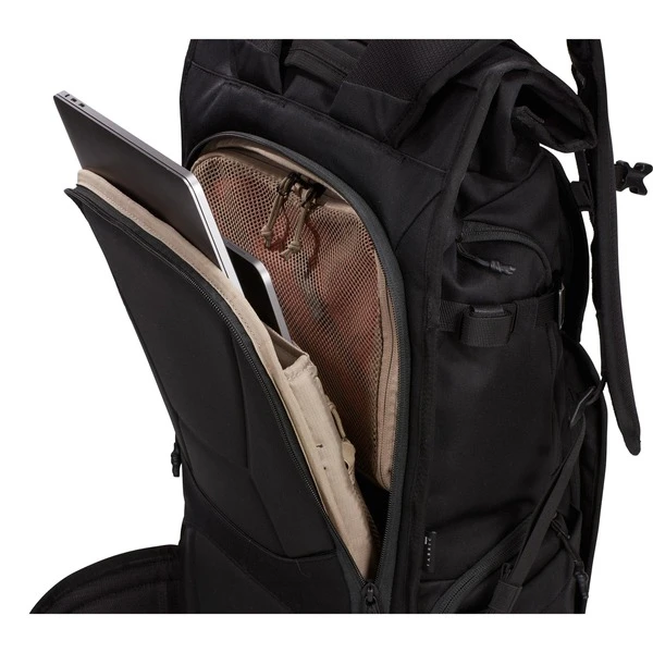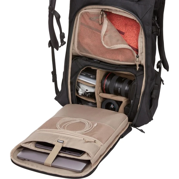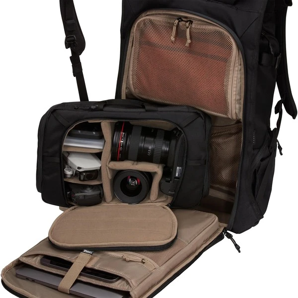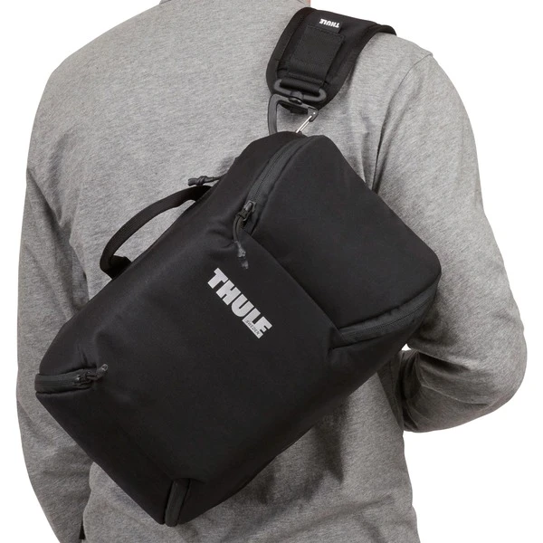 Der Covert DSLR 32L von Thule ist ein robuster und vielseitiger 3-in-1-Rucksack mit herausnehmbarem Kamerafach und einer voll anpassbaren Innenaufteilung für den Allroundeinsatz. Ein praktischer seitlicher Zugang erleichtert den Zugriff auf Kamera und Fotoausrüstung. Das gepolsterte Kamerafach lässt sich einfach entnehmen, so dass sich der Rucksack auch problemlos als Daypack für Reisen nutzen lässt. Das Kamerafach selbst kann auch als Sling- oder Schultertasche getragen werden. Die Innenaufteilung lässt sich dank Reißverschluss komplett entfernen und in der Netztasche verstauen, um das Fach als Ganzes zu nutzen. Auch ein 39,6 cm (15,6“) Notebook und ein 27,9 cm (11“) Tablet findet in einem Fach an der Rückseite Platz. Die magnetischen Vorderfächer verfügen zur Sicherheit über einen Reißverschluss und bieten große, überlappende Netzfächer.Art.-Nr.: 1736299