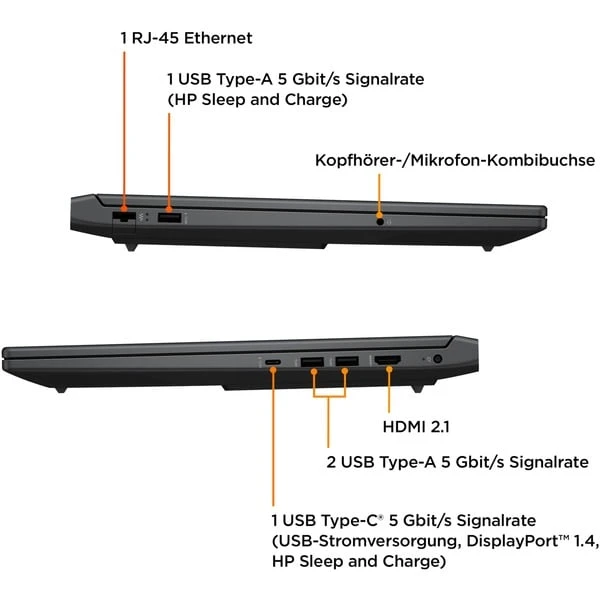 | Weitere Informationen | Der USB-C Port unterstützt DisplayPort 1.4 und Power Delivery, ein USB-A mit HP Sleep and Charge | ||