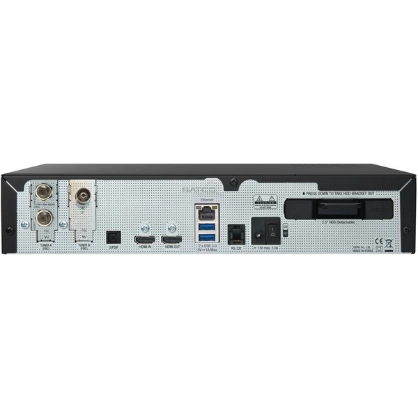 | Anschlüsse | 1x Antenne-In, 1x Antenne-Out, 2x LNB-In, 1x HDMI-Eingang, 1x HDMI-Ausgang, 1x USB-A-2.0, 2x USB-A-3.2 Gen 1 (5 Gbit/s), 1x RJ 45, 1x Optisch-Out | ||