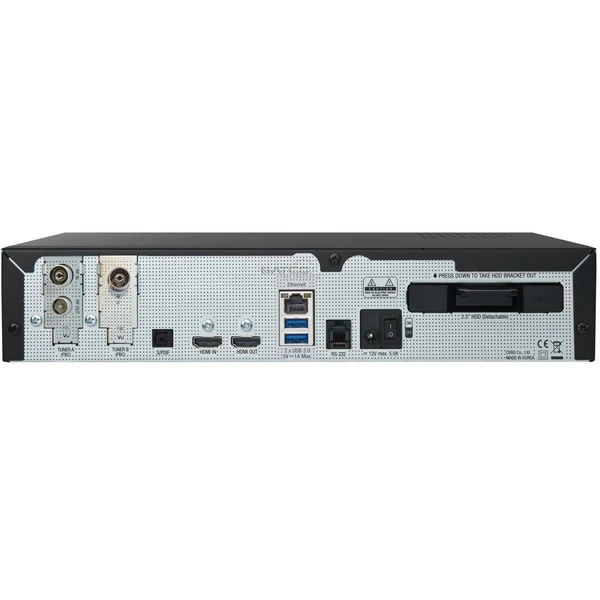 | Anschlüsse | 2x Antenne-In, 1x Antenne-Out, 1x HDMI-Eingang, 1x HDMI-Ausgang, 1x USB-A-2.0, 2x USB-A-3.2 Gen 1 (5 Gbit/s), 1x RJ 45, 1x Optisch-Out | ||