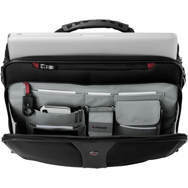 Die Wenger Legacy ist eine stilvolle Notebooktasche mit klassischer Optik. Sie ist ideal für Geschäftsleute und für die stilbewusste Freizeit geeignet. Die Legacy passt für alle gängigen Notebooks mit einer Bildschirmdiagonale bis zu 16″ (40,6 cm). Das geringe Eigengewicht sorgt zusammen mit dem Softgrip-Tragegriff für optimalen Tragekomfort. Die Legacy ist mit einem gepolsterten Notebook-Fach und einem Extra-Fach für Unterlagen mit seitlichem Rausfallschutz ausgestattet. Mit diversen praktischen Einsteckfächern, Handytasche und Schlüsselhalter sowie Zusatz-Reißverschlussfach auf der Vorderseite ist sie der ideale Begleiter. Das Zubehörfach ist herausnehmbar. Ein extra reißfester und gepolsterter Schultergurt rundet die Ausstattung der Legacy ab.Art.-Nr.: 1241382