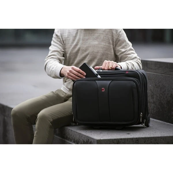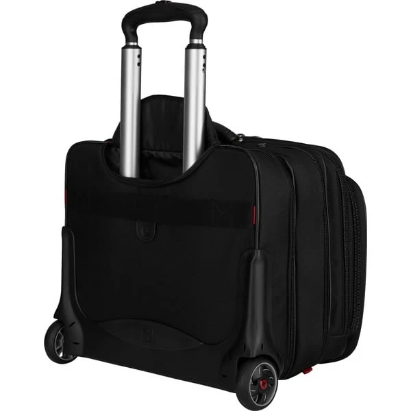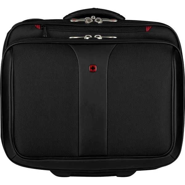 Der schwarze Wenger Patriot ist geeignet für Notebooks 17,“ (43,2 cm). Der elegante und trendige Trolley besitzt mehrere praktische Zubehörfächer in der Innenseite des Taschendeckels, eine Trennwand in der Mitte und große und leichtlaufende Rollen. Ein weiteres Highlight ist die abnehmbare Notebooktasche, in der ein 39,6 cm (15,6″) transportiert werden kann.Art.-Nr.: 1199646