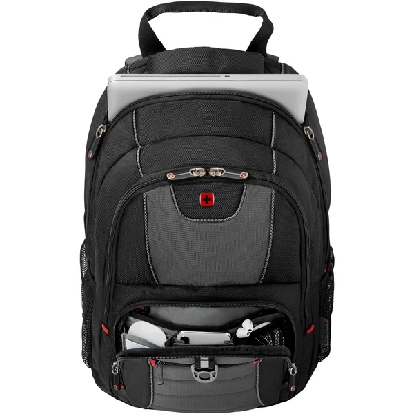 Der Wenger Legacy Pillar Computer Backpack eignet sich für moderne Leute, die viel unterwegs sind und ein aktives Leben führen. Der Rucksack kombiniert Bequemlichkeit und Komfort mit einem schicken Design und ist eine optimale Aufbewahrungsmöglichkeit für ein Notebook und für Zubehör, welches unterwegs benötigt wird. Das Notebookfach hat Platz für Notebooks mit einer Bildschirmdiagonale bis 16″ (40,6 cm) und in den anderen Fächern ist noch genügend Platz für Wechselkleidung oder andere Sachen. Der Pillar Computer Backpack verfügt über ein gepolstertes Notebook-Sicherheitsfach, ein „Quik-Pocket“ für den schnellen Zugriff, eine Fronttasche mit Organizer, Handytasche und Schlüsselhalter, ein Fach für Zeitschriften und Dokumente, bequeme gepolsterte Schultergurte, eine Rückenpolsterung mit atmungsaktiven Luftkanälen, seitliche Netztaschen für Trinkflaschen und einen verstärkter Boden.Art.-Nr.: 1236777