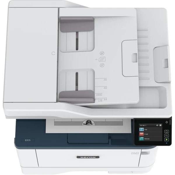 Der B305 von Xerox ist ein effizient arbeitender Multifunktions-Laserdrucker mit Monochrom-Druckwerk und einer Scan- und Kopierfunktion. Er lässt sich auf Wunsch mit Hochkapazitäts-Toner für bis zu 20000 Seiten (ISO) betreiben und kann per LAN oder WLAN vernetzt werden. Dabei gibt er bis zu 38 Seiten pro Minute aus und verfügt über einen Einzug an der Oberseite, der bis zu 50 Blatt Kopier- oder Scanvorlagen aufnimmt. Mit der One-Touch-Bedienoberfläche an der Vorderseite lassen sich alle Vorgänge komfortabel und zeitsparend steuern.Art.-Nr.: 1806401