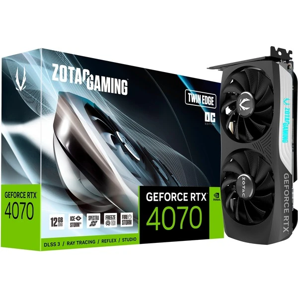 Die ZOTAC GeForce RTX 4070 Twin Edge OC ist eine High-End-Grafikkarte mit der GeForce RTX 4070 GPU von NVIDIA. Die leistungsfähigen GeForce RTX 40-Grafikkartenserie basiert auf der NVIDIA Ada Architektur und bietet neue Stufen von Gaming Realismus, Geschwindigkeit und Leistungseffizienz, RTX IO und realistische VR-Erlebnisse. Weitere Features sind Real-Time Ray Tracing, NVIDIA Ansel, mit umfangreichen Werkzeugen zur Erstellung von Screenshots in Spielen sowie NVIDIA G-SYNC, G-SYNC HDR, DirectX 12 Ultimate, NVIDIA DLSS 3.0, PCI Express Gen 4, NVIDIA FreeStyle, NVIDIA ShadowPlay, NVIDIA Highlights, NVENC Gen 8, AV1 Encoder, Vulkan RT API und OpenGL 4.6. Die auf der ZOTAC GeForce RTX 4070 Twin Edge OC verbaute GPU verfügt über 5888 CUDA Cores. Der 12 Gbyte große GDDR6X-Speicher verfügt über einen 192-Bit-Speicherkontroller.Art.-Nr.: 1906278